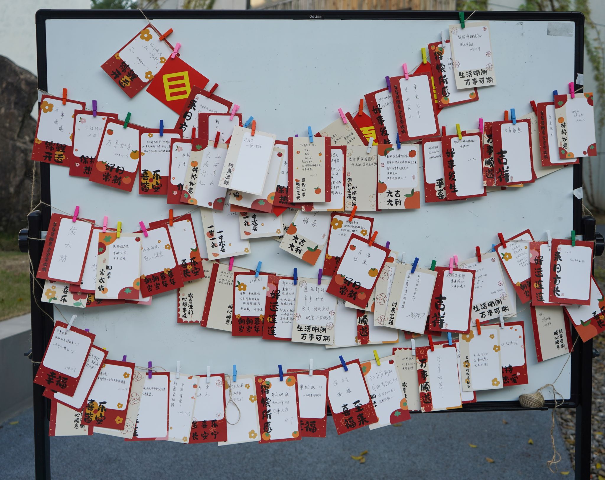 参与活动的同学们在贺卡写下新的一年对自己或他人的祝福与期许。一张张精致贺卡,承载着冬日里最温润的礼赞。