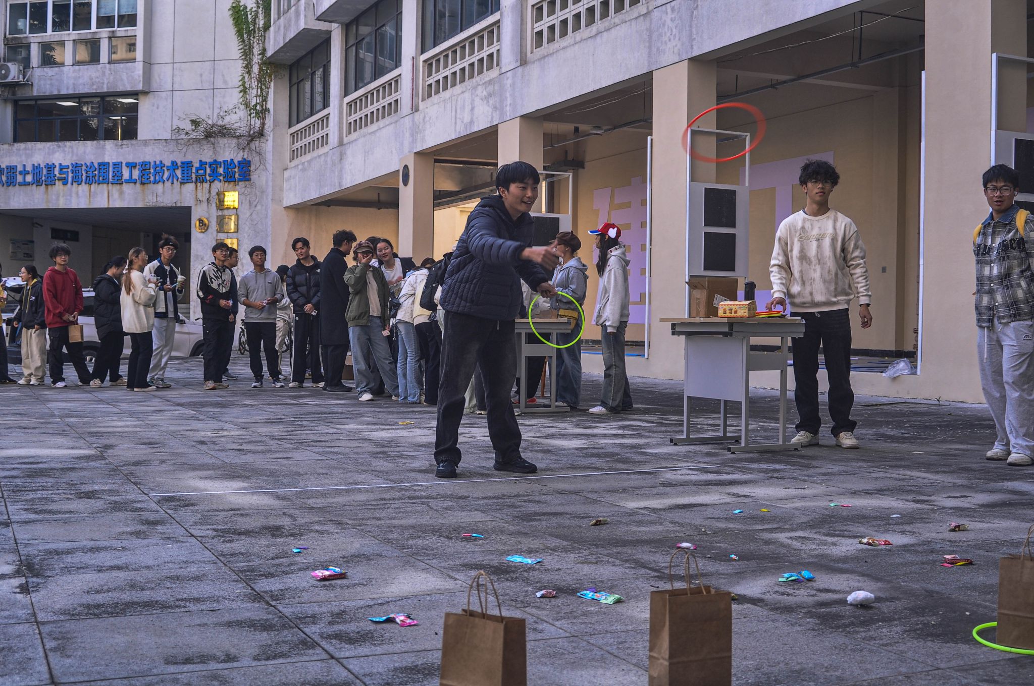 活动中设置了反向指令、暖茶寻味盲猜、节气拼图挑战、幸运套圈大挑战等多个趣味环节。反向指令游戏中,参与的同学耳听指令、反向行动,失误与欢笑交织,考验着反应与专注力;暖茶寻味环节里,桂圆红枣茶、生姜红糖茶等三款暖茶香气四溢,同学们细细品尝、认真猜测,在舌尖味蕾的享受中感受冬日暖意;节气拼图挑战中,大家凝神聚力,在规定时间内拼接完成冬至主题拼图,沉浸式感受传统文化魅力;幸运套圈现场更是热闹非凡,同学们瞄准目标、精准投掷,套中奖品的喜悦欢呼声此起彼伏。