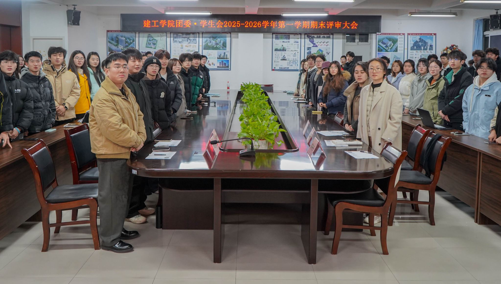 学工办主任兼团委书记郭瑞芬、团委副书记朱宸希、团学全体成员齐聚一堂,共同总结学期成果,见证荣誉时刻。
