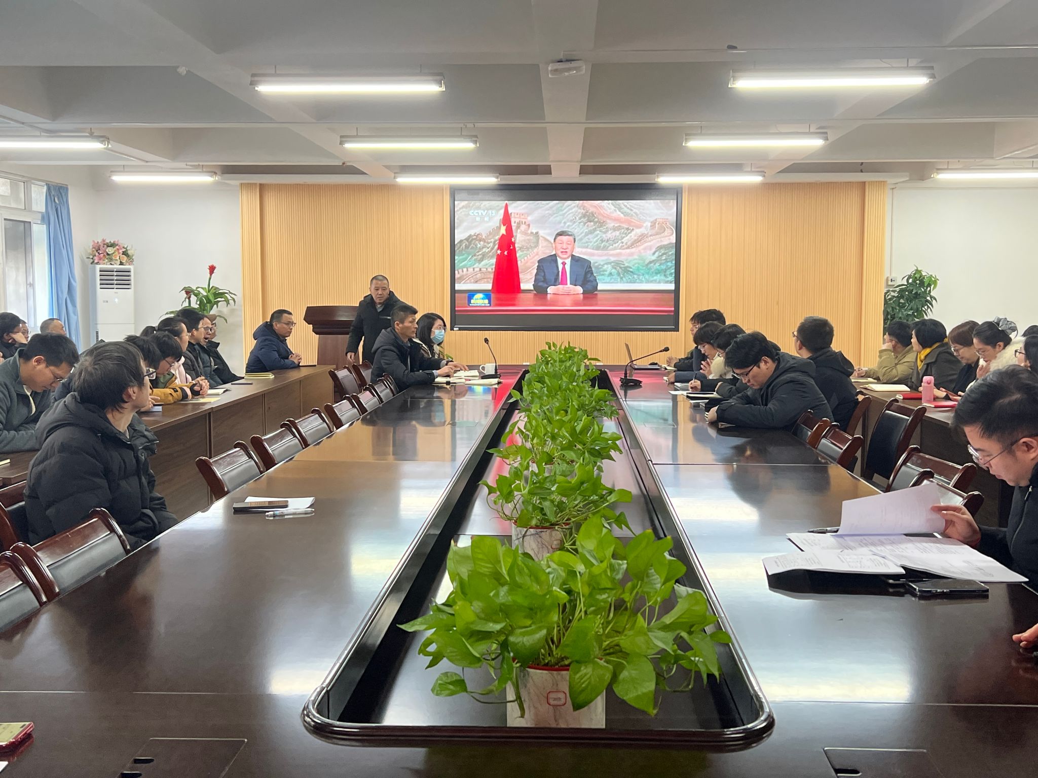 会议伊始,大家聆听了习近平主席2026年新年贺词,观看了“踔厉奋发勇毅前行把宏伟愿景变成美好现实—习近平主席二O二六年新年贺词引发各地干部群众热烈反响”的央视报道。贺词强调创新推动高质量发展,鼓舞广大干部群众奋发进取,坚定“两个确立”,做到“两个维护”,全面推进中国式现代化建设。