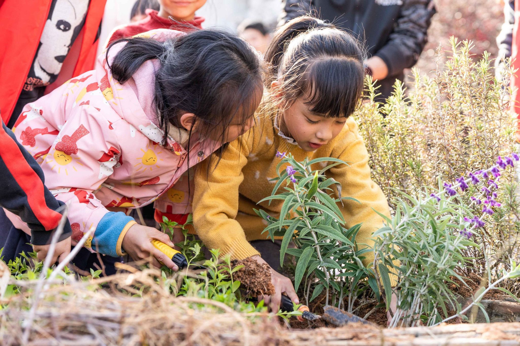 “这个植物我认识,它叫鼠尾草,我们家楼下花坛也种了这个,过一段时间,它还会开花呢!”温州大学城附属学校的小学生一眼就认出了鼠尾草。