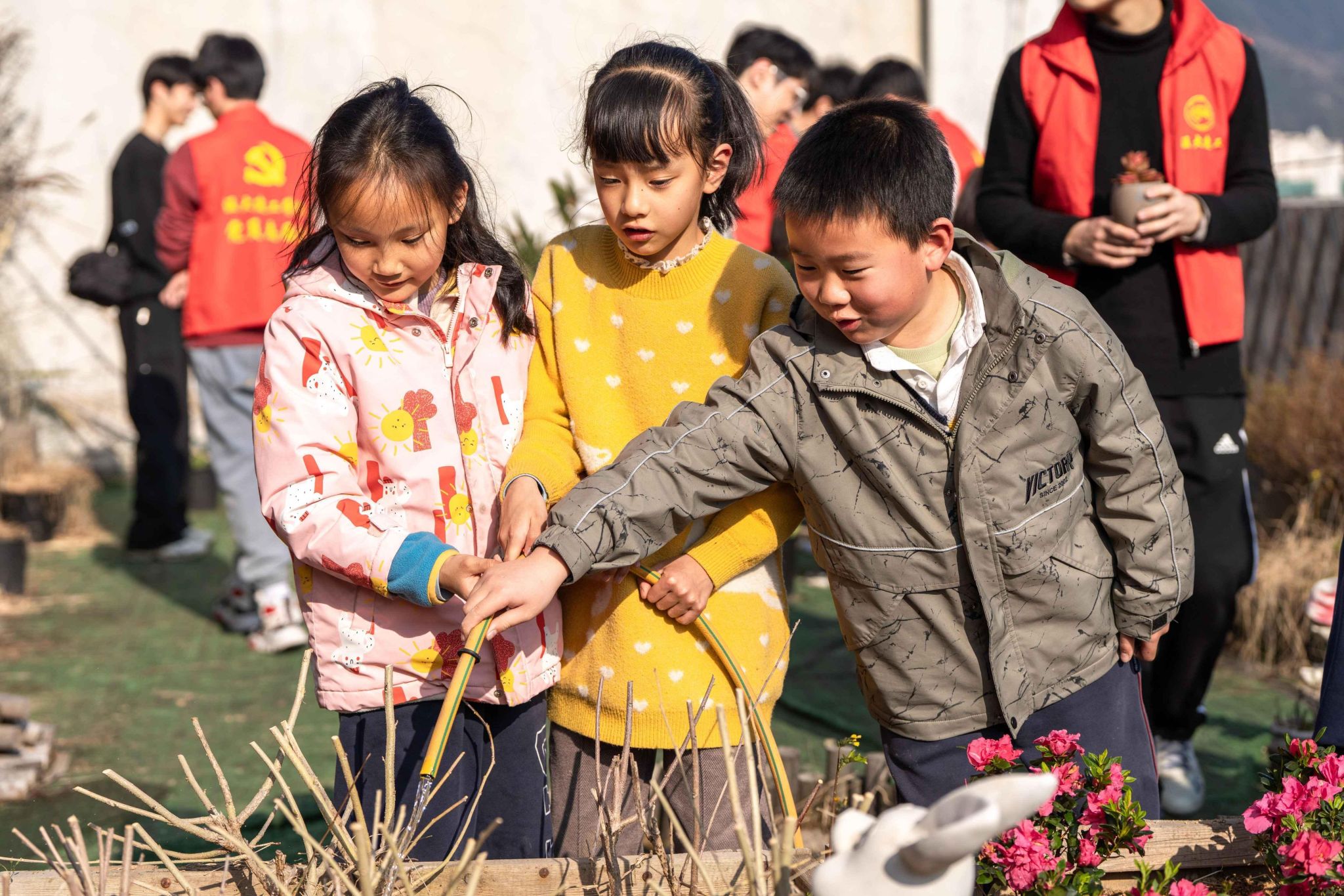 的志愿者们为小朋友们介绍了不同绿植的特点,共同完成了绿植栽种活动,为今年的春天栽下了新的希望。