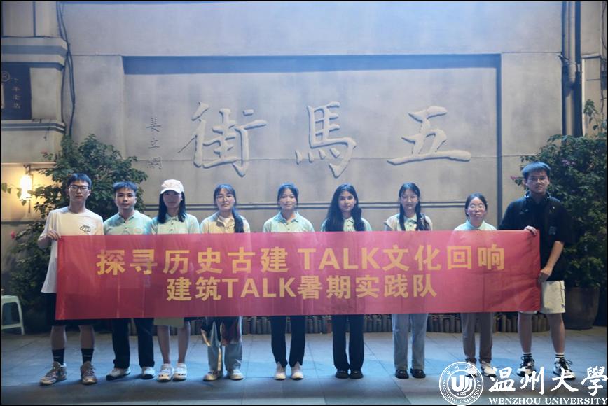 在五马街,温州大学暑期实践队找寻着历史古建、传统文化载体和体现温州乡土人情的建筑,他们穿梭在城市的大街小巷,记录和学习传统建筑的造型和原理。“大家看这里,这五匹扬蹄飞奔的骏马雕像就是五马街名字的由来,青铜工艺效果和汉唐造型艺术风格透露着深厚的历史底蕴,雕塑的基座以桥为设计起点,配置以喷泉流水,突出温州水乡特色。”