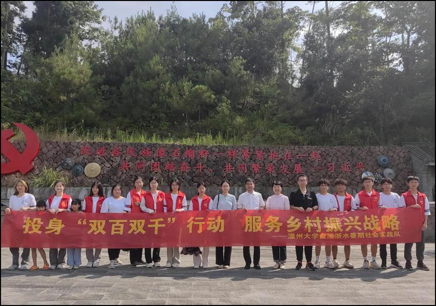 “畲漫浙水”暑期社会实践队前往文成县黄坦镇培头村,开展关爱培头民族小学儿童、调研特色产业、了解脱贫攻坚成果等活动,引导广大青年在学思践悟中坚定理想信念,在调查研究中亲近农民,了解农村,服务乡村振兴,为为温州大学“双百双千”行动所规划的美好蓝图挥洒青春汗水,为乡村振兴事业献计出力。