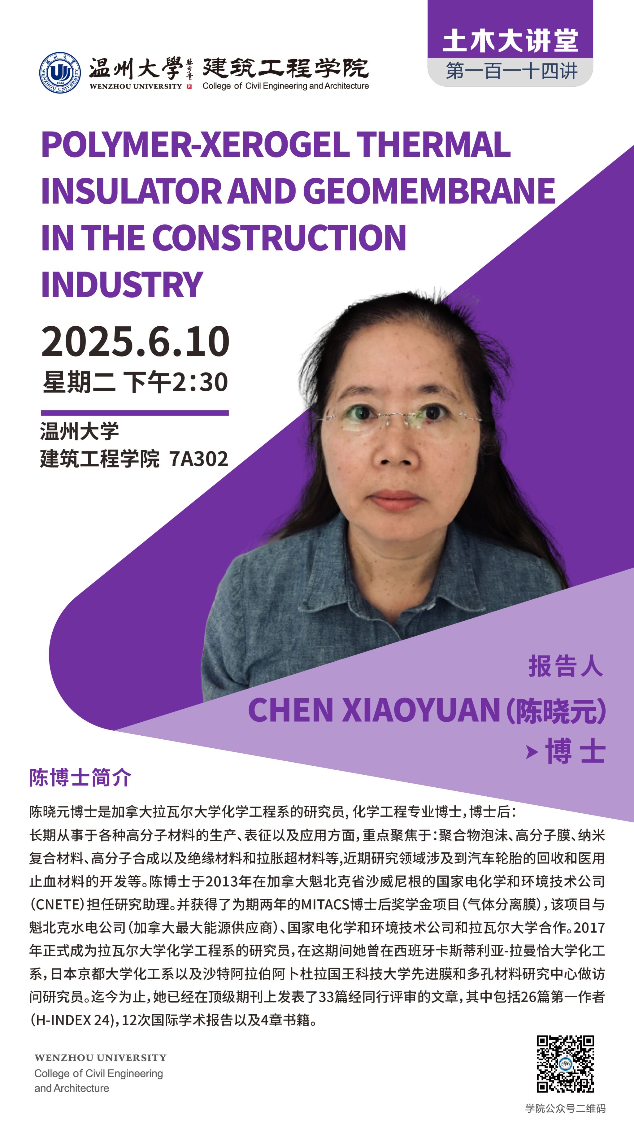 学术讲座预告:POLYMER-XEROGEL THERMAL INSULATOR AND GEOMEMBRANE IN THE CONSTRUCTION INDUSTRY