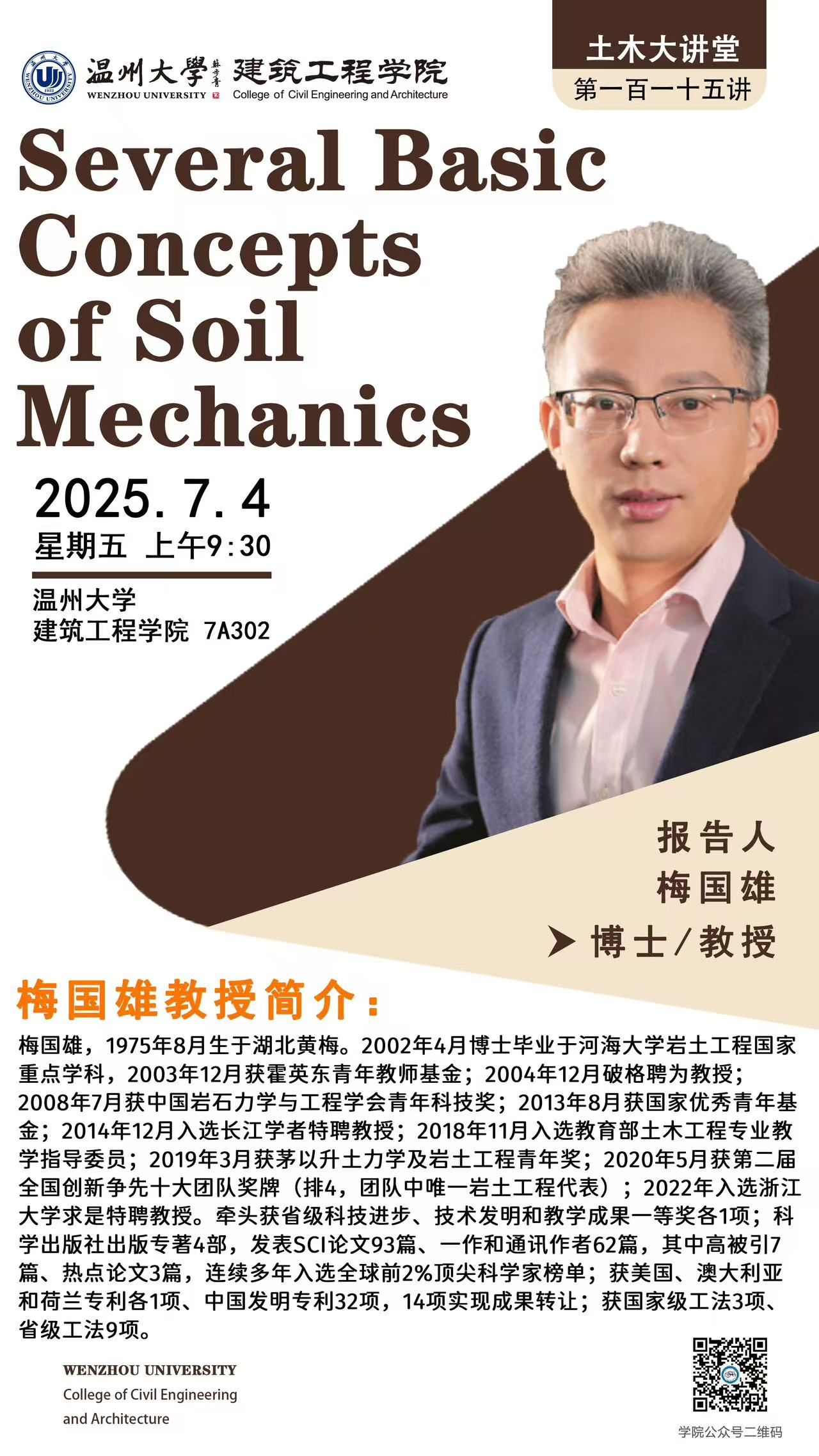 学术讲座预告:Several Basic Concepts of Soil Mechanics