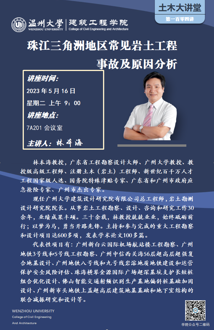 学术讲座预告:珠江三角洲地区常见岩士工程事故及原因分析