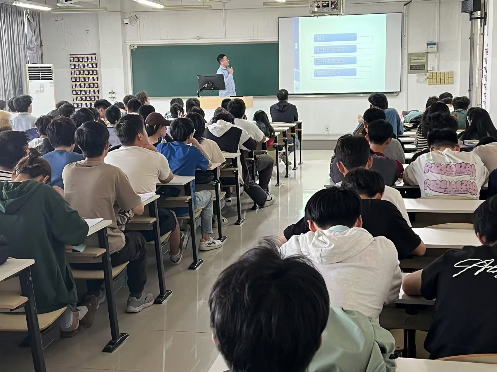 在南7-D410教室召开2023级土木工程专业模块方向选择宣讲会。23级土木工程专业全体同学参加了本次会议。会议由土木系系主任叶昌鹏老师主持,叶老师首先介绍了本次宣讲会的流程和志愿表填报注意事项等。然后,于正、潘安平、李桅和叶昌鹏老师分别在PPT上为我们详细介绍了桥梁与隧道、工程管理、智能建造和建筑工程四个专业方向的基本情况、社会声誉、影响力以及未来发展趋势与就业前景等方面。
