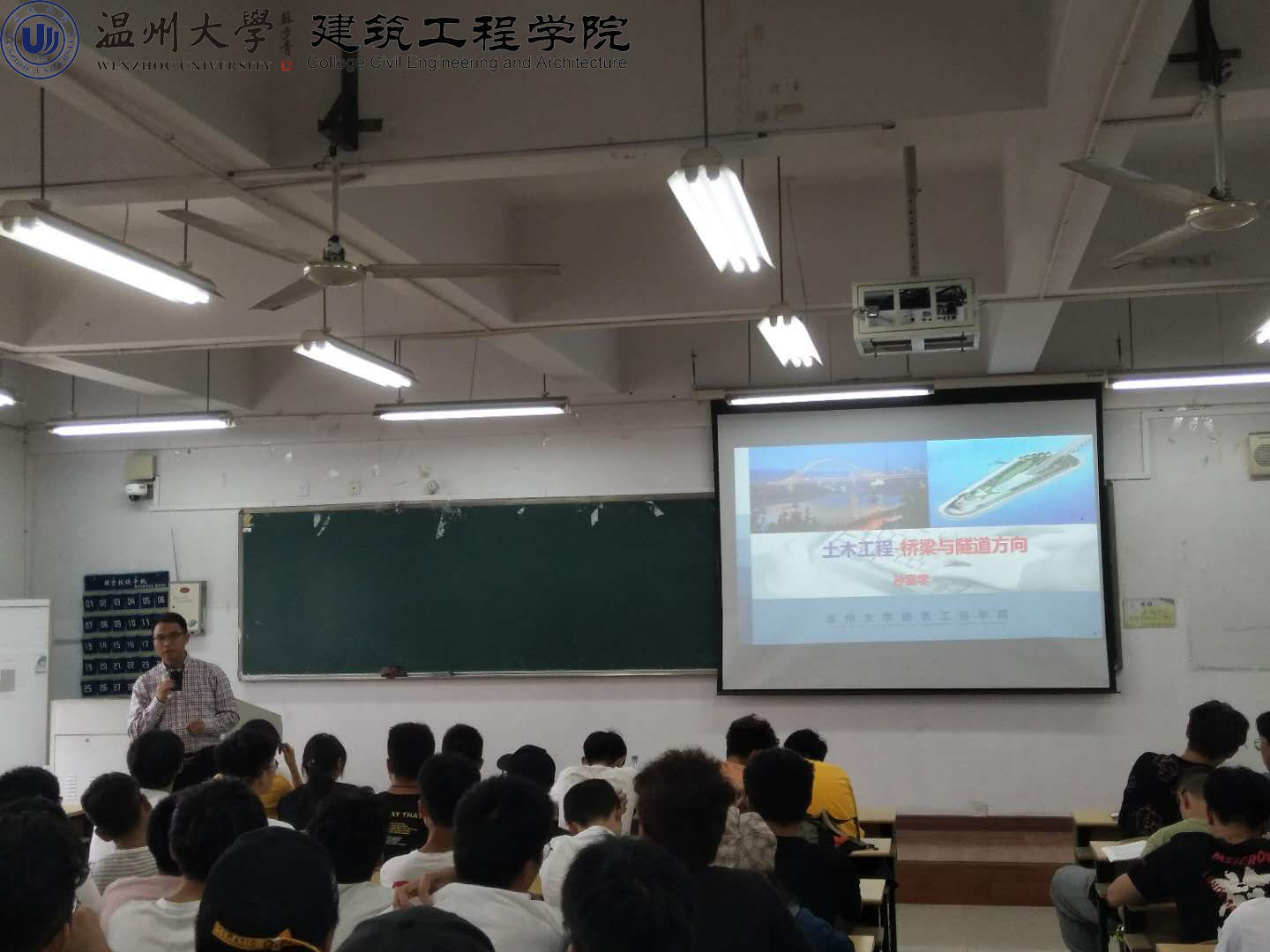 在南7-D302教室召开2019级土木工程专业模块方向选择宣讲会。19级土木工程专业全体同学参加了本次会议。会议由叶昌鹏老师主持,叶老师首先介绍了本次宣讲会的流程和志愿表填报注意事项等。然后,孙富学、刘谨和叶昌鹏老师分别在PPT上为我们详细介绍了桥梁与隧道、工程管理、建筑工程三个专业方向的基本情况、社会声誉、影响力以及未来发展趋势与就业前景等方面。