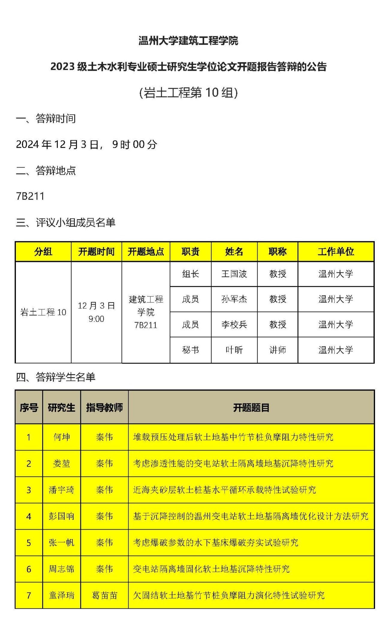 2023级专硕研究生学位论文开题报告答辩公示(十)