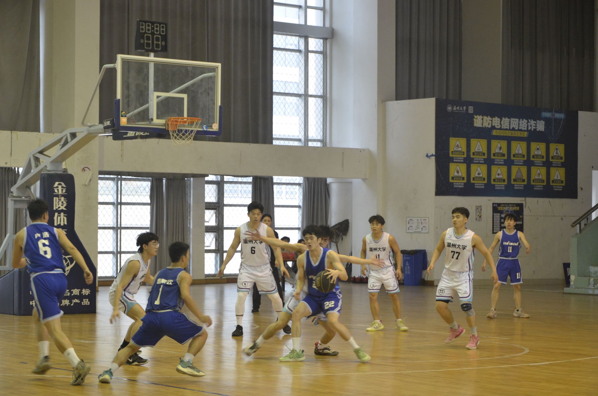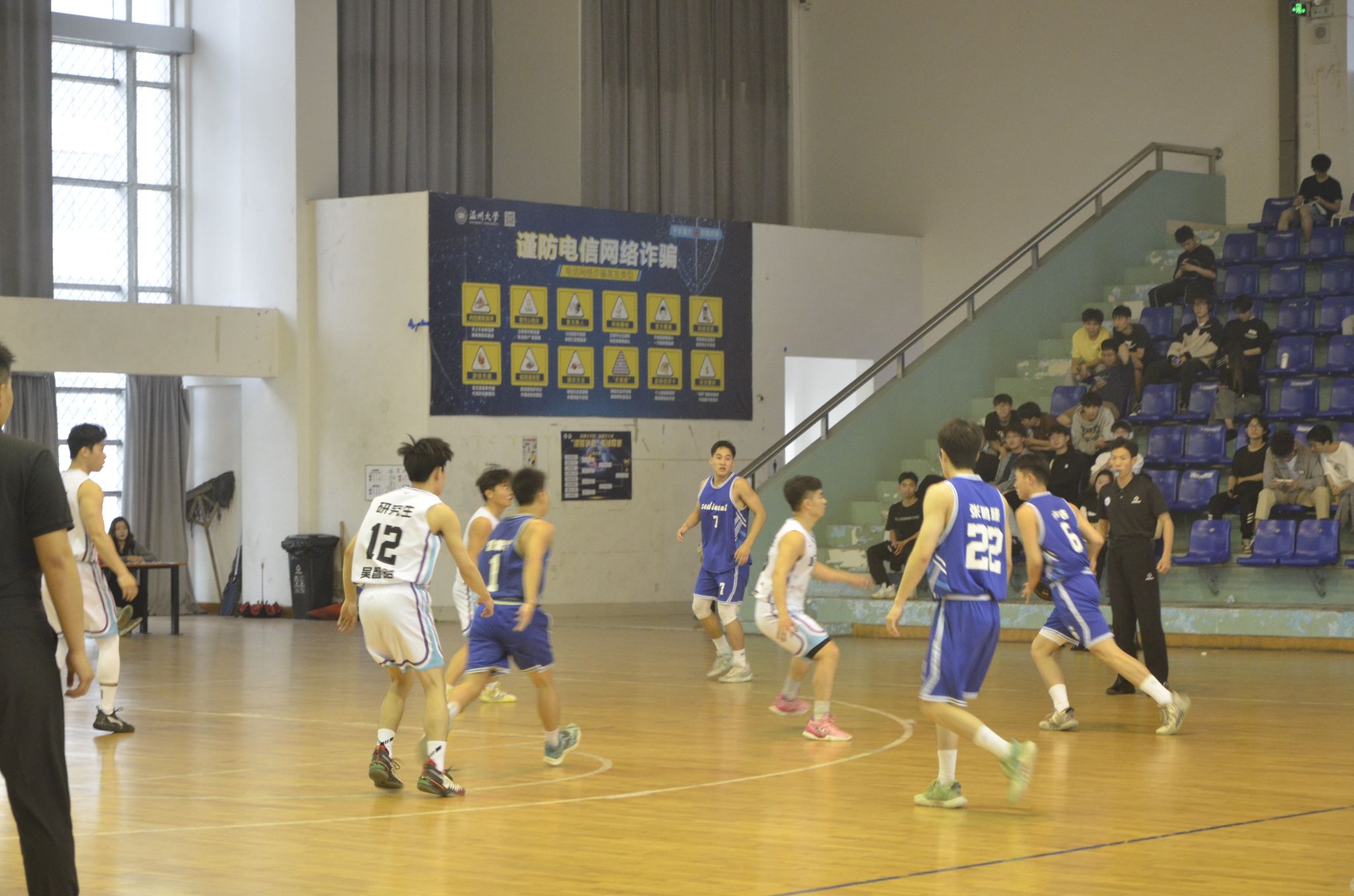 控场、传球、攻守、投篮!在季军争夺赛中,21土木1班与23土木水利班双方势均力敌、紧咬比分,队员们穿越层层防守跨步灌篮,找准时机中途拦截,团队合力守护篮板,现场精彩连连,球员们激烈交锋与观众们呐喊助威,让比赛持续升温。