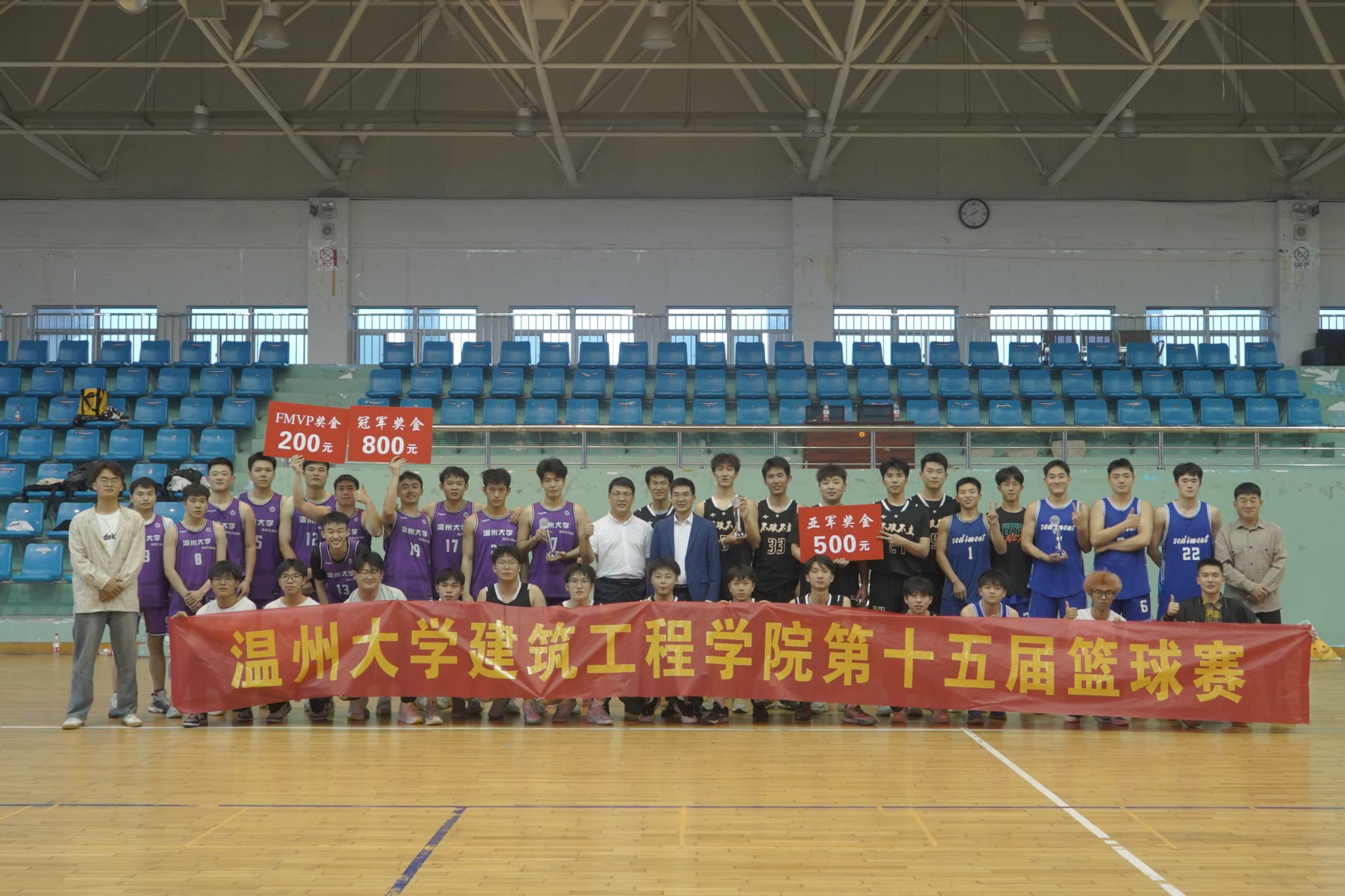 随着裁判的一声哨响,比赛正式结束!从紧张刺激的抢断到振奋人心的扣篮,从默契十足的传球到关键时刻的绝杀,队员们秉持着“友谊第一,比赛第二”的体育精神,在比赛场上齐心协力、挥汗如雨。经过激烈的角逐,22土木水利研究生班夺得冠军,21土木3-4班获得亚军,21土木1班获得季军,吴亮宇荣获总决赛中“最有价值的球员”称号。