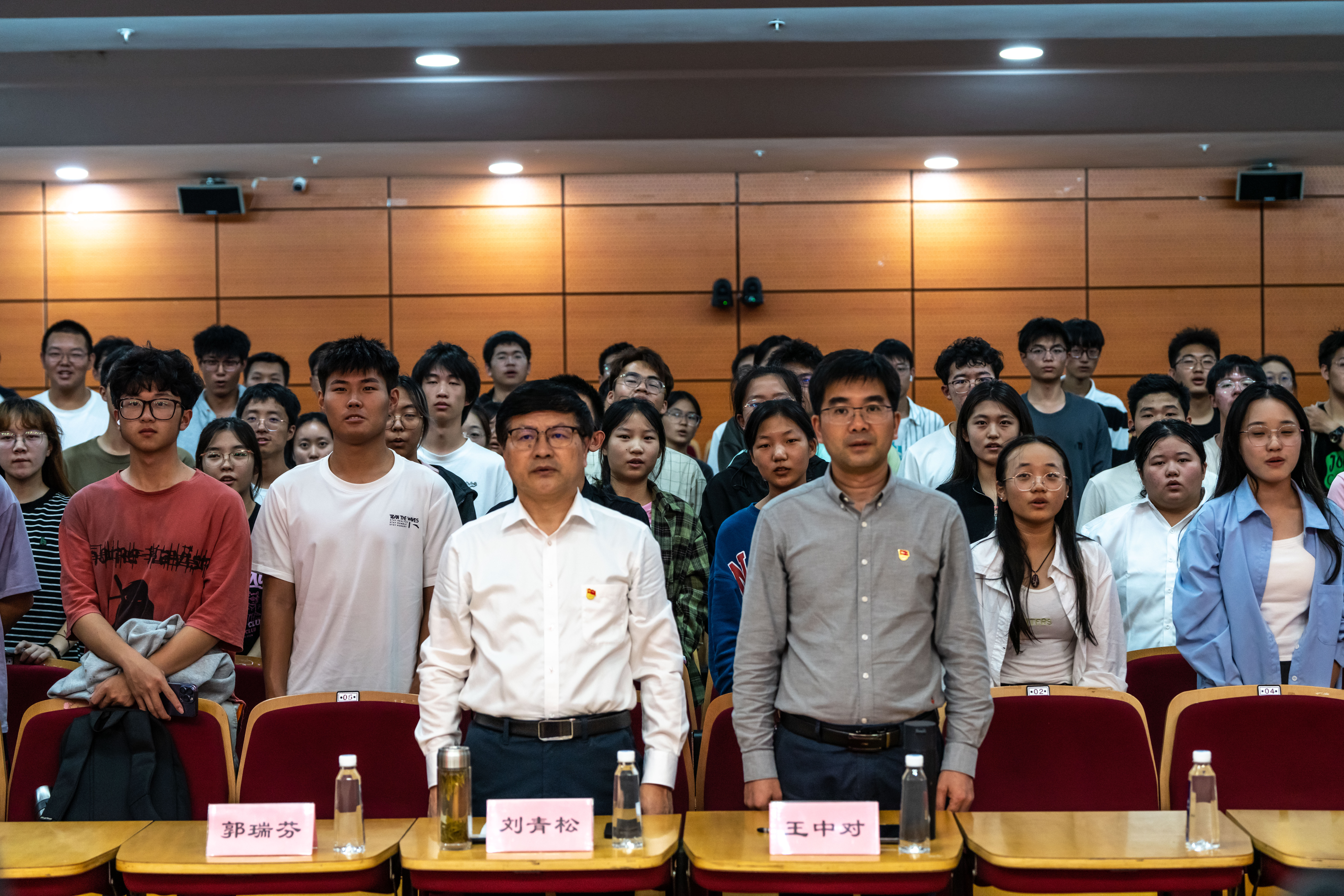 党委书记刘青松,党委副书记王中对,辅导员朱宸希出席。朱宸希老师主持开班仪式。党委书记刘青松上“学习习近平文化思想,勇担新时代文化使命”主题教育专题党课。