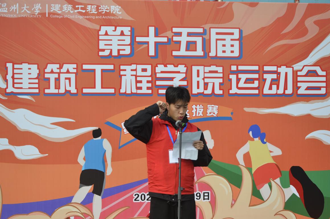 上午8点30分,院运会正式开始。本次院运会分为田径运动会和趣味运动会两部分,田径运动会项目包括:60米、100米、200米、400米、800米、1500米、跳高、跳远、铅球、男子4*100米接力赛、女子4*100米接力赛、男女混合4*400米接力赛;趣味运动会项目包括:毛毛虫竞速比赛以及拔河比赛。