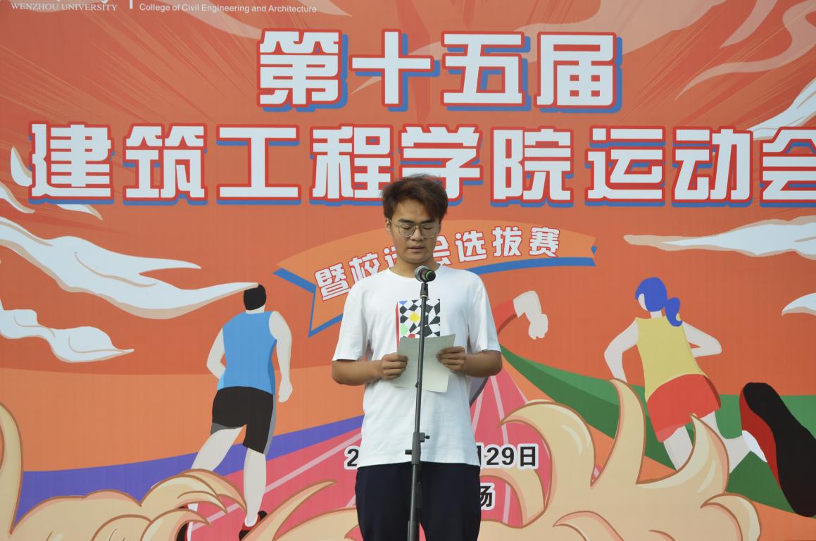 王中对副书记致院运会开幕辞。他指出,本次院运会是一个选拔赛,要选出校运会参赛选手;是一个动员令,希望大家养成热爱运动的习惯;是一个大舞台,期待看到一个个精彩、感动的画面。他希望本次院运会,一要赛出水平,让真正有水平的运动员脱颖而出;二要展示风格,赛出同学情谊、赛出球探直播形象;三要确保安全,全体运动员要树立“安全第一”意识,全体学生要遵守规矩、服从管理、维护秩序,后勤保障要到位,按需供应饮用水、食物等,备好急救药箱等。