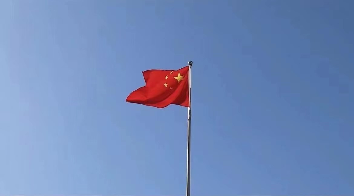 图三:五星红旗迎风飘扬