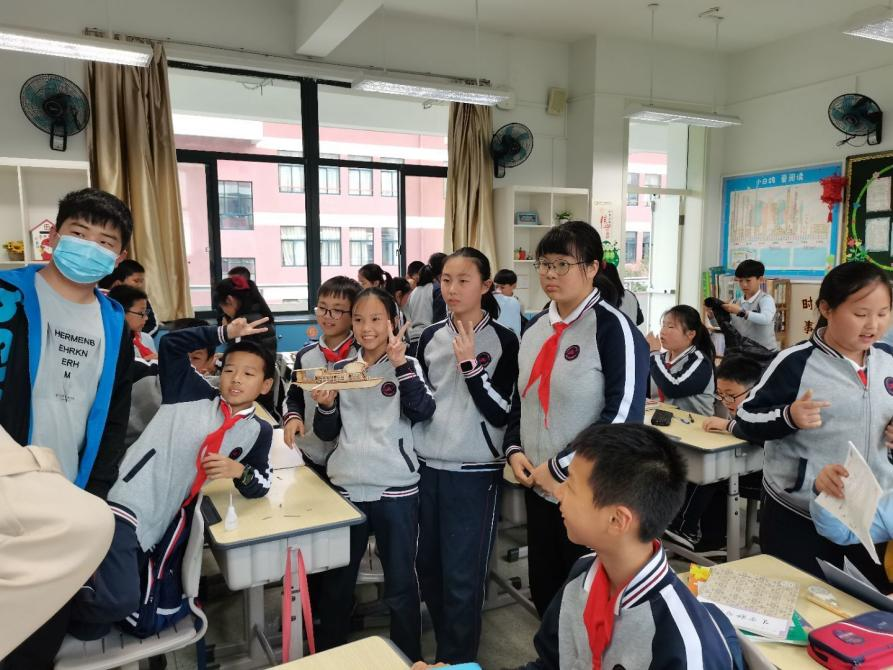 的二十多名志愿者们带着材料来到温州大学城附属学校,带领四年级、五年级小朋友开展一场别开生面的红船教学课。