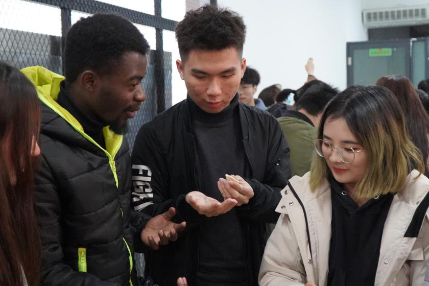 本次晚会以包饺子为核心内容,旨在向外国友人展示中国美食、宣扬中国传统文化。晚会开始后,成员们分小组进行“饺子比美”大赛,大家纷纷摩拳擦掌,天马行空进行“创作”,在小小的饺子上添加自己的想法,场面一度妙趣横生。随后在大众评委的评审下,“阳生春又来”小组被评为“最佳创意奖”。颁奖结束后,就到了大家最为期待的“吃饺子”环节。漫漫寒夜,大家吃着热乎乎刚出锅的饺子一团和气、不亦乐乎,一盘盘小小的饺子,不仅温暖了人心,更加拉近了大家心与心之间的距离。