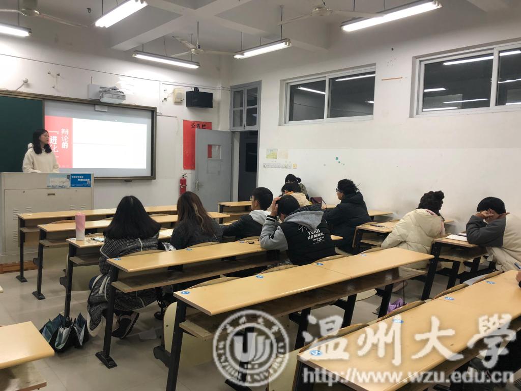 辩论队于2018年12月9日在7D305举行第一次队内培训。此次培训有幸邀请到了温州大学校辩论队队员、温州大学瓯江球探直播