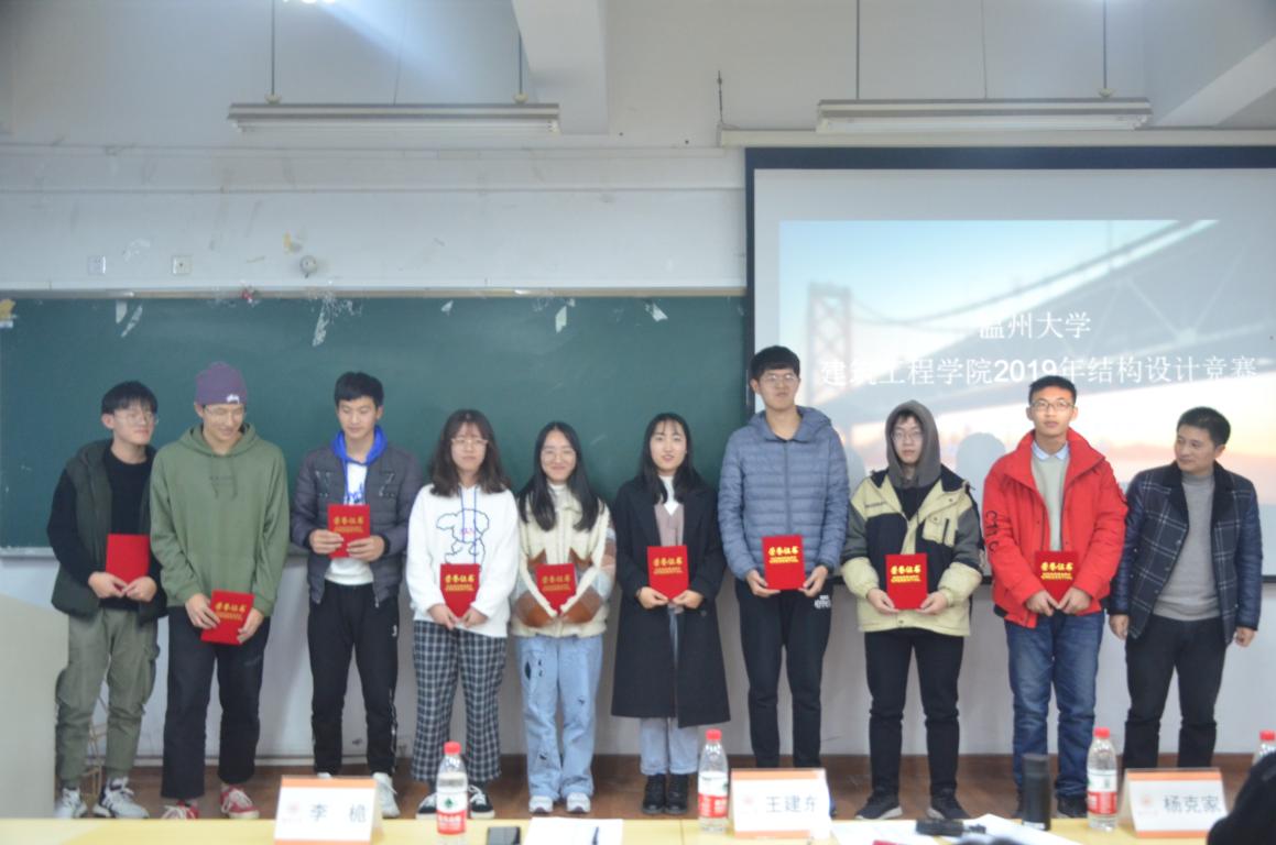 为提高我院学子的创新实践能力,培养探索求知精神。2019年12月28日下午1:30,我院于D座302教室举办了大学生结构设计竞赛。评委是来自浙江工业大学的王建东老师、我院杨克家老师、李桅老师。