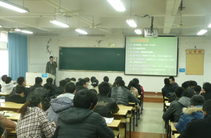 首先,教学科副科长许好好老师介绍本次会议主要内容及会议议程。然后由建筑学专业负责人苏宏志老师及土木工程、工程管理专业负责人丁光亚老师对毕业实习的内容、要求、目的及注意事项等方面作了详细的介绍。