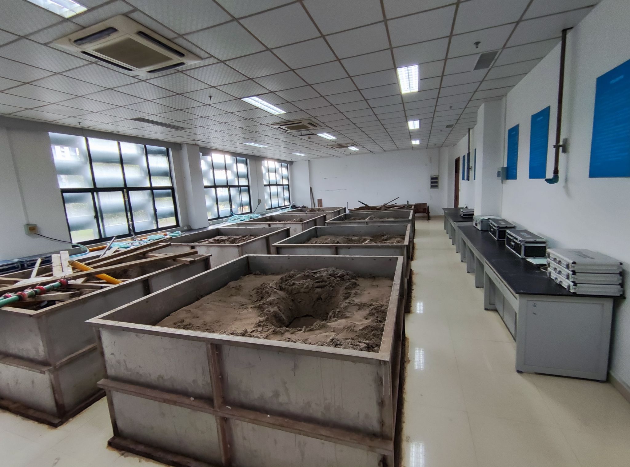 地基处理实验室主要承担主要承担土木工程专业、城市地下空间工程专业《土木工程实训》课程教学任务。目前该实验室可承担的主要实验内容有真空预压地基处理室内模型实验、真空预压联合堆载室内模型实验、电渗固结实验以及其他相关的地基处理室内模型实验与监测。主要仪器包括整套真空预压实验模型、直流电源、测斜仪、分层沉降仪、地基承载力检测仪、十字板剪切仪等。
