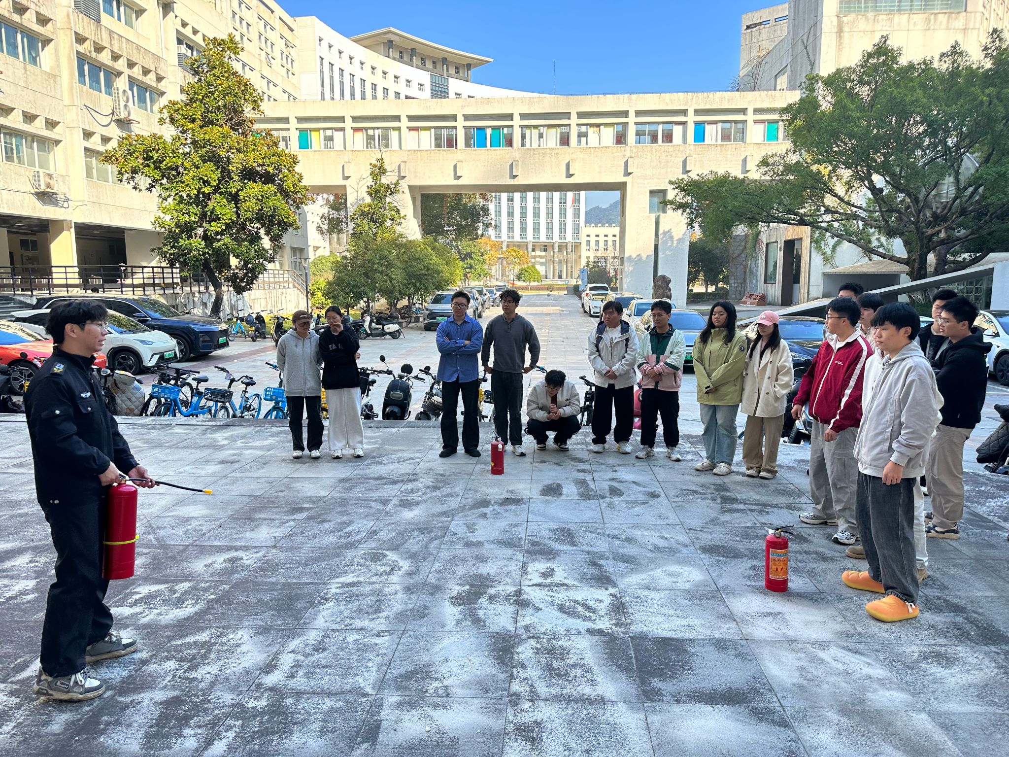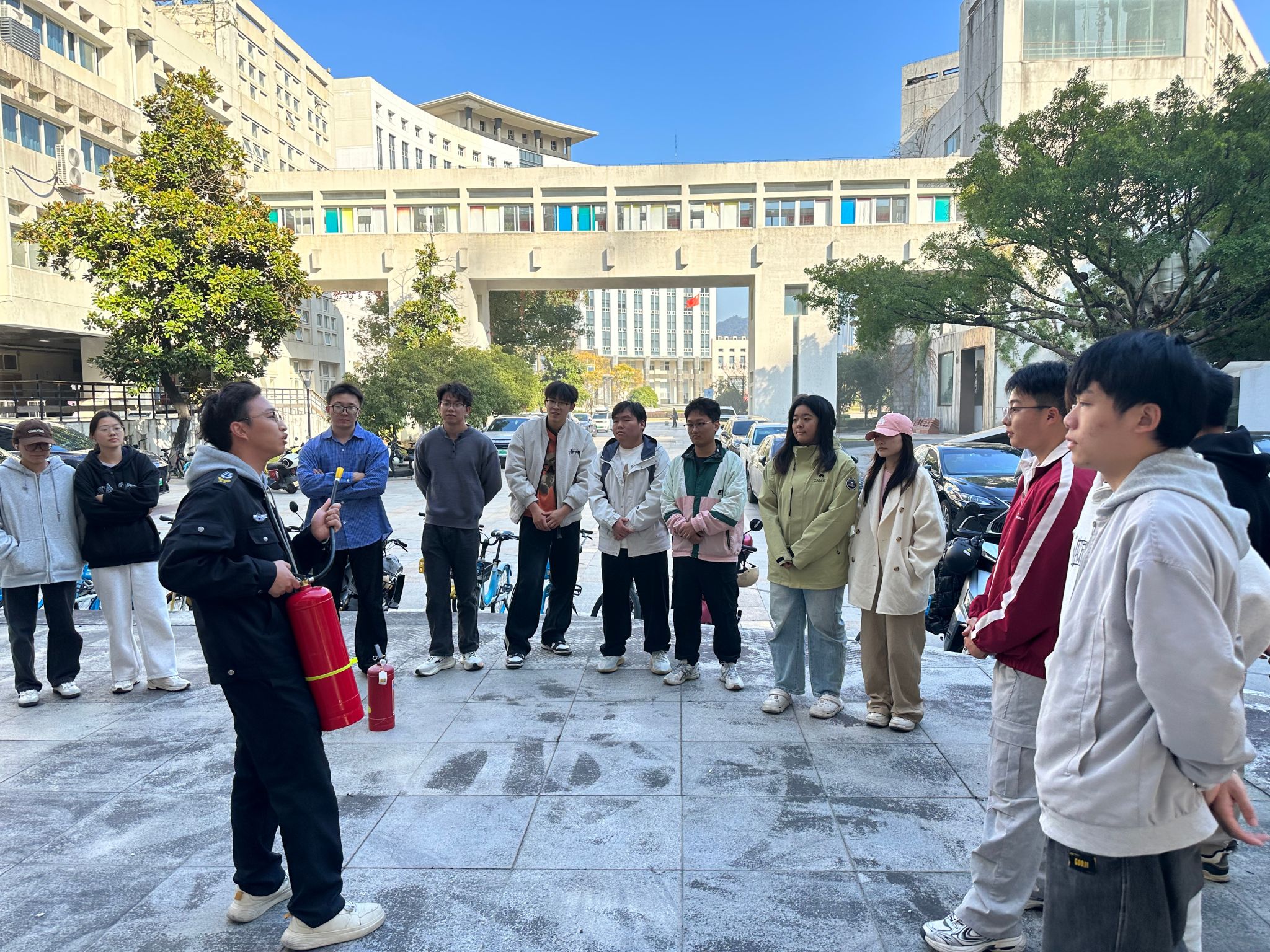 疏散演练结束后,进入消防知识实操讲解环节。学校安全保卫部老师结合实验室火灾特点,为师生们系统讲解了火灾应急处置的核心要点:一是火灾初期要准确判断火情,若火势较小可利用身边消防器材及时扑救,若火势失控需立即撤离并拨打“119”报警,报警时清晰说明火灾地点、燃烧物质及人员情况;二是强调实验室火灾多与用电、危化品相关,逃生时要远离电源开关、危化品存储柜等危险区域,避免二次伤害。在灭火器使用教学现场,安全保卫部老师手持干粉灭火器,详细演示了“提、拔、握、压”的规范操作步骤,着重讲解了灭火器的适用场景、压力检查方法及使用时的安全距离。