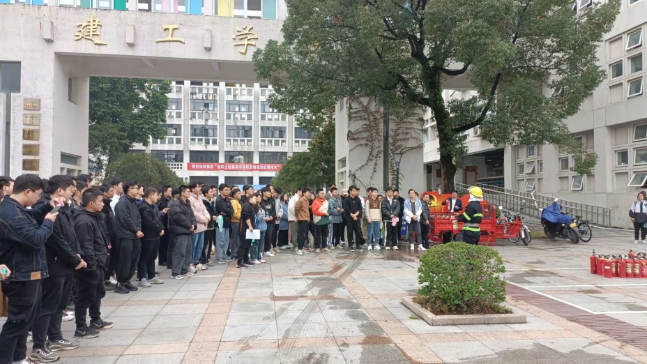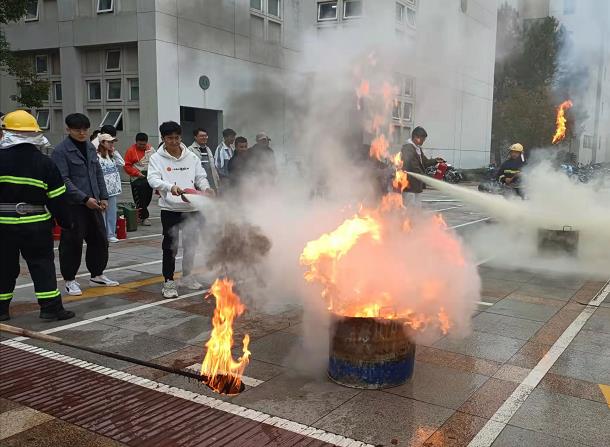 保卫处的老师在7号楼室外准备了火源和灭火器,宣讲了消防知识及灭火器的使用,老师和学生们亲自操作使用了灭火器。