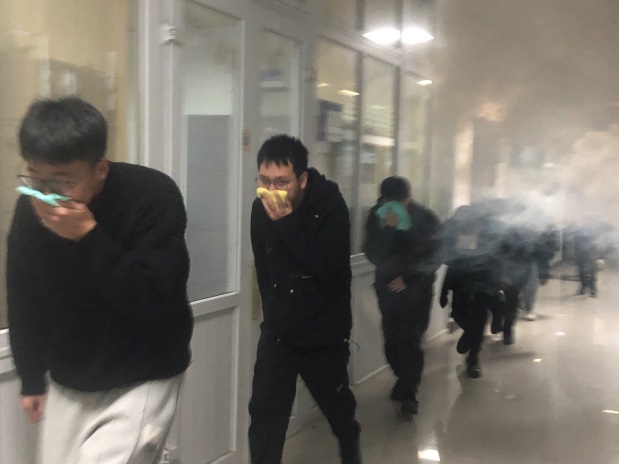 演练过程中,指挥人员能沉着冷静、临危不乱,带领学生有序、迅速进行避险、自救,学生们反应敏捷、听从指挥,师生一起出色、圆满地完成了预定的演练内容,使我院快速处理突发事件能力和团结协作精神得到加强。